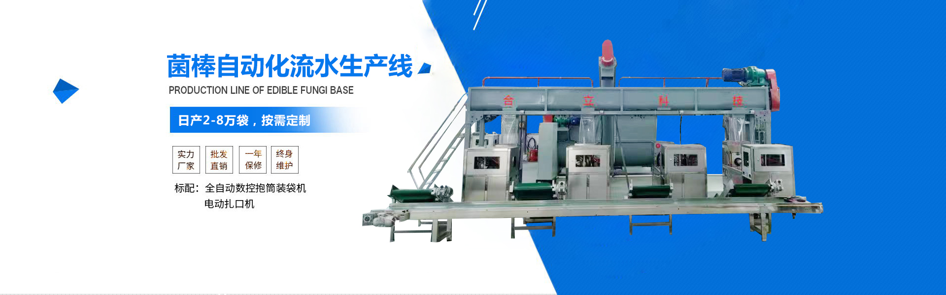 湖北合立農(nóng)業(yè)科技有限公司坐落于炎帝神農(nóng)故里腳下,香菇之鄉(xiāng)、編鐘古韻—湖北省隨州市曾都經(jīng)濟(jì)開(kāi)發(fā)區(qū)周家寨村三組。是一家集香菇設(shè)備設(shè)計(jì),生產(chǎn)、銷(xiāo)售服務(wù)為一體的香菇設(shè)備專(zhuān)業(yè)廠(chǎng)家,包含有:食用菌裝袋機(jī)、食用菌全自動(dòng)扎口機(jī)、食用菌全自動(dòng)窩口機(jī)、裝袋扎口一體機(jī)、裝袋窩口一體機(jī)、全自動(dòng)套袋裝袋一體機(jī)、工廠(chǎng)化食用菌自動(dòng)生產(chǎn)線(xiàn)線(xiàn)、食用菌后期烘干機(jī)、篩選機(jī)等香菇篩選機(jī)、木耳篩選機(jī),蒸汽擦面機(jī)、香菇磨腳機(jī)、微波滅菌機(jī)、烘干機(jī)等專(zhuān)業(yè)設(shè)備。該系列設(shè)備以勞動(dòng)成本小,生產(chǎn)效率高,加工質(zhì)量好深受廣大用戶(hù)好評(píng)!